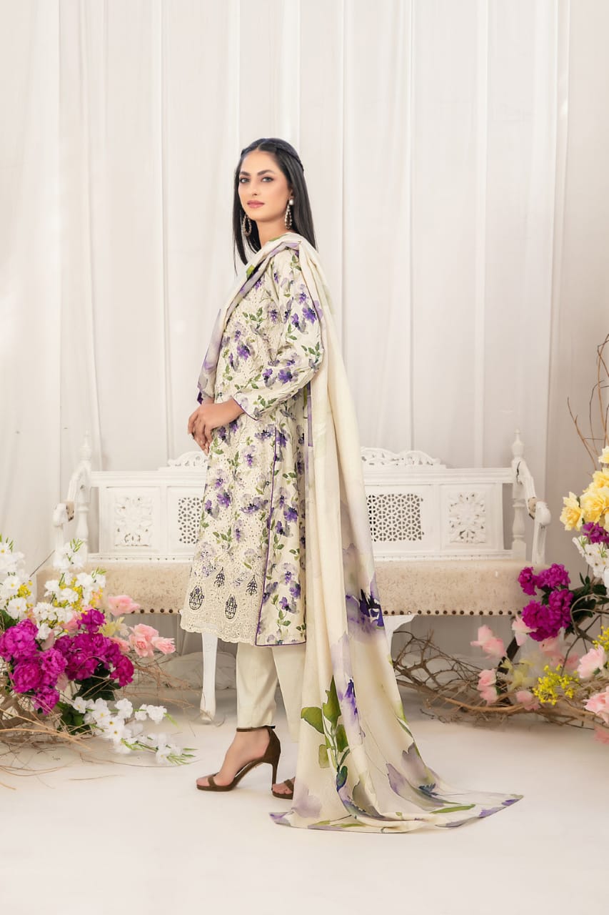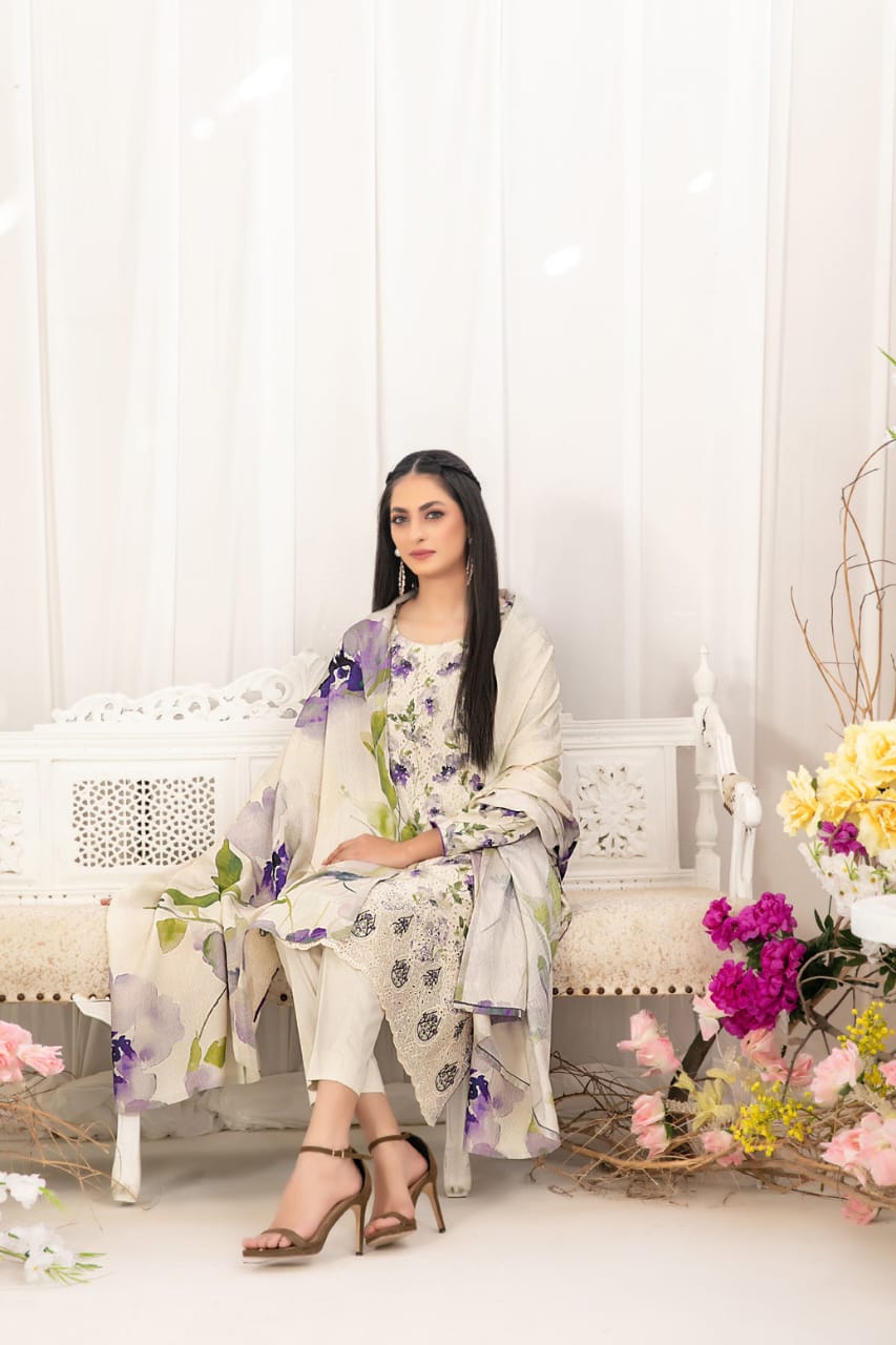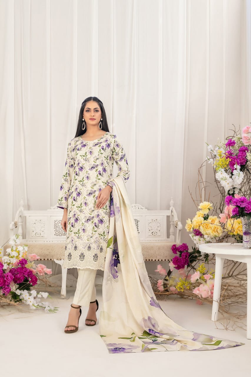 3 Piece Un-Stitched By Tawakkal Fabrics, Attractive & Elegant Digital Printed & Embroidered Viscose Collection comes with: