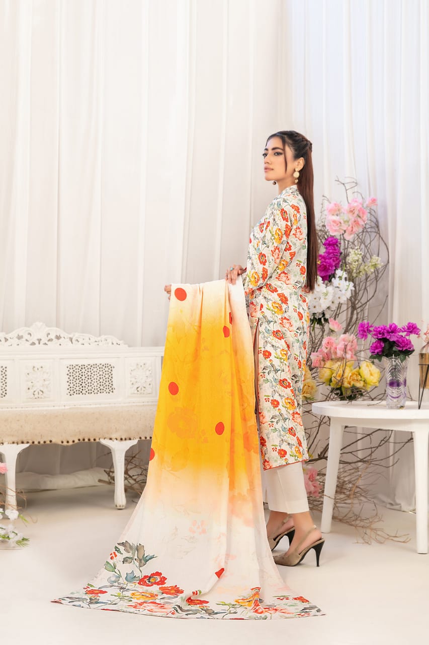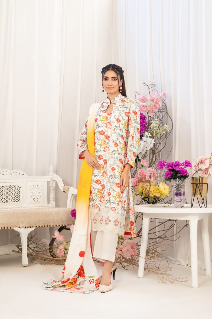 3 Piece Un-Stitched By Tawakkal Fabrics, Attractive & Elegant Digital Printed & Embroidered Viscose Collection comes with: