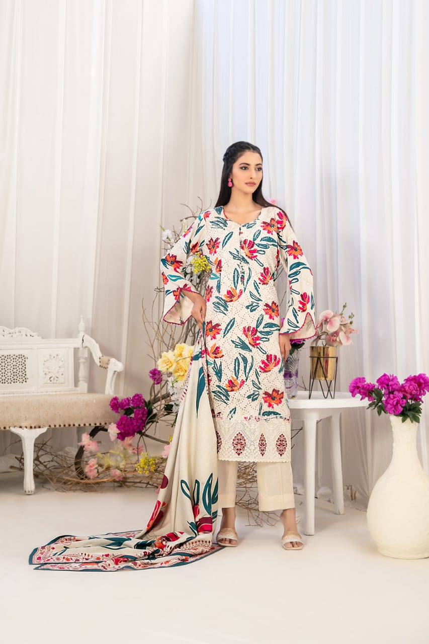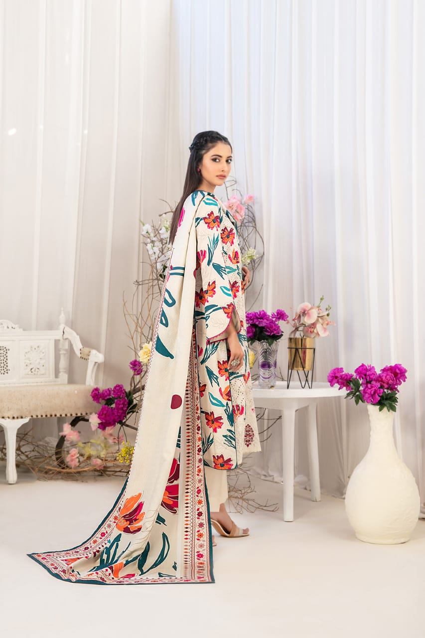 3 Piece Un-Stitched By Tawakkal Fabrics, Attractive & Elegant Digital Printed & Embroidered Viscose Collection comes with: