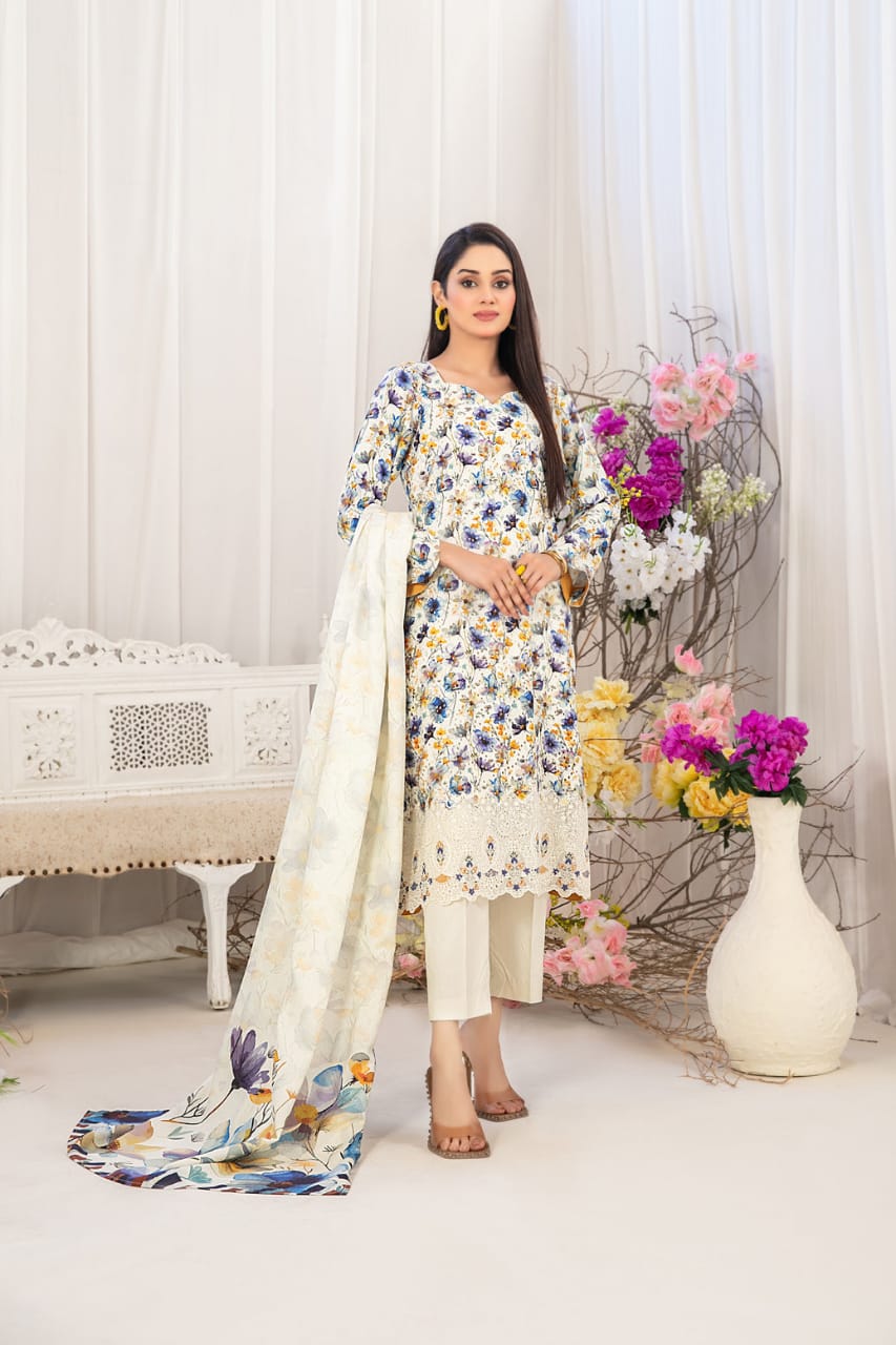 3 Piece Un-Stitched By Tawakkal Fabrics, Attractive & Elegant Digital Printed & Embroidered Viscose Collection comes with: