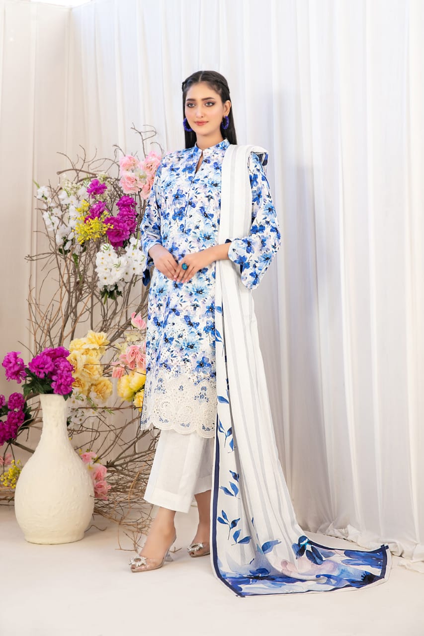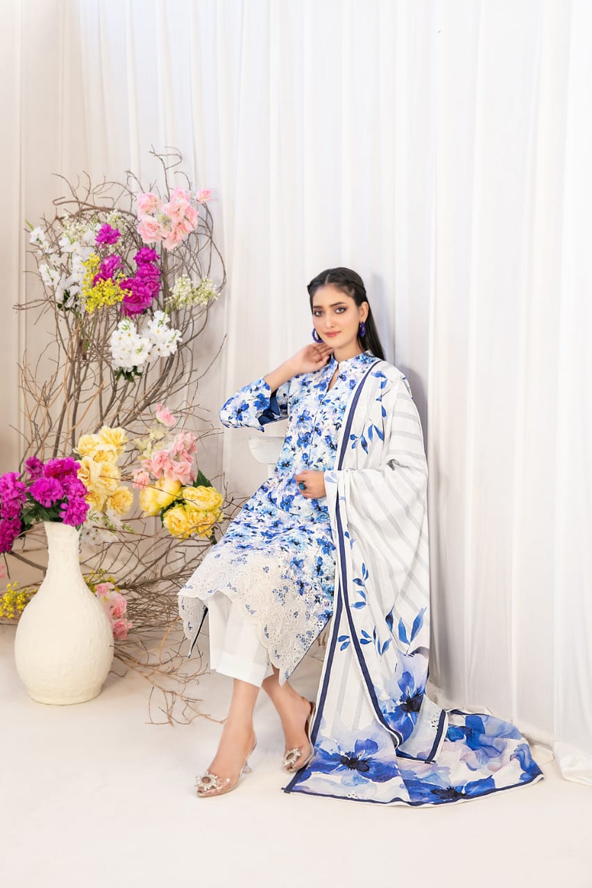 3 Piece Un-Stitched By Tawakkal Fabrics, Attractive & Elegant Digital Printed & Embroidered Viscose Collection comes with: