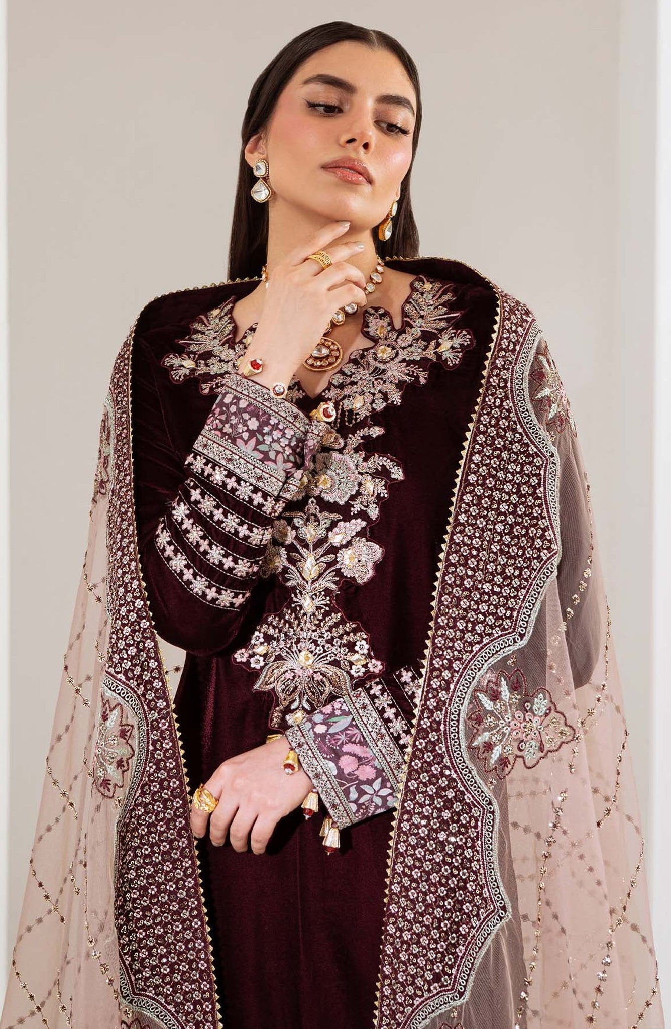 - Embroidered And Embellished Velvet Front