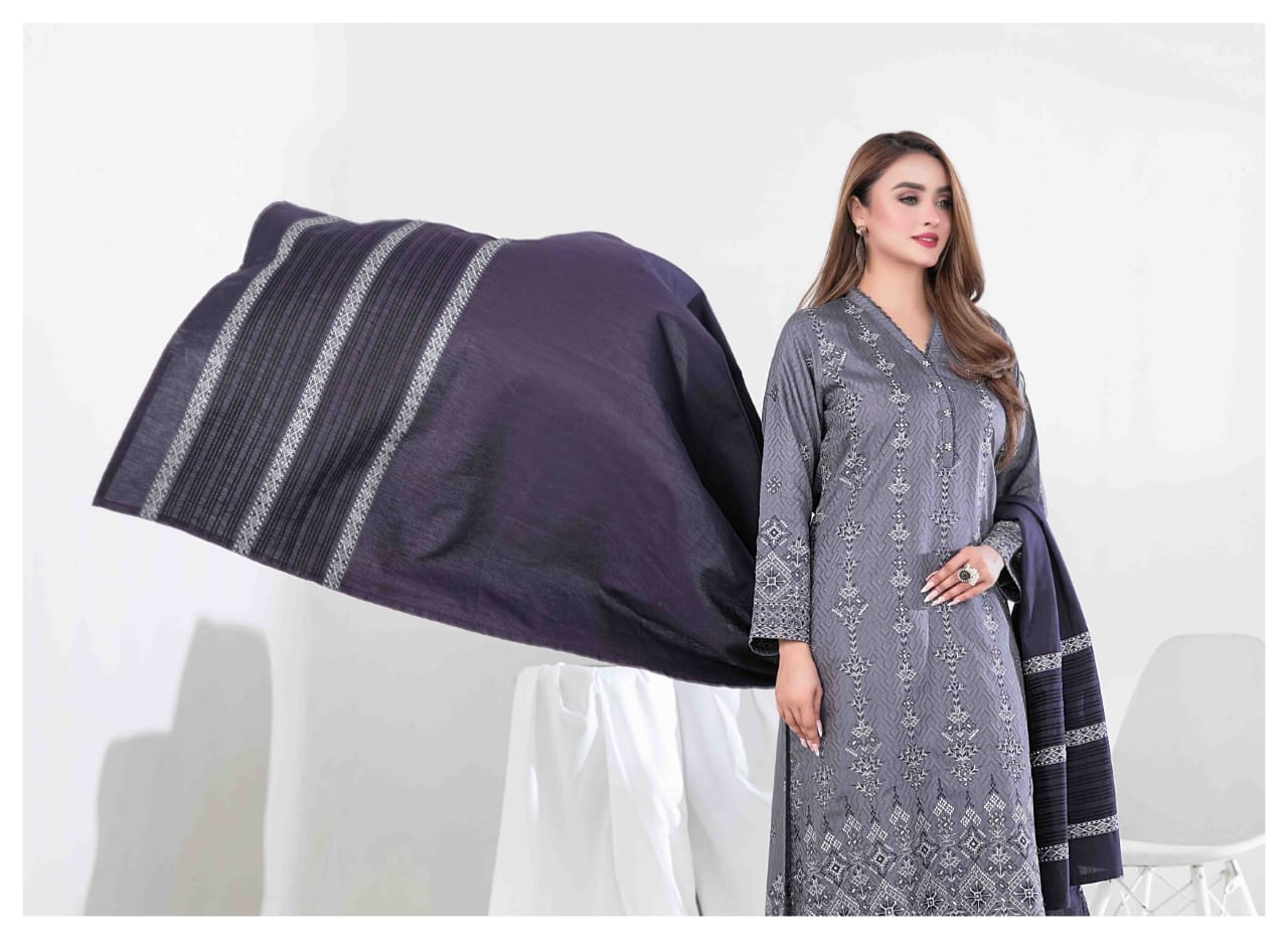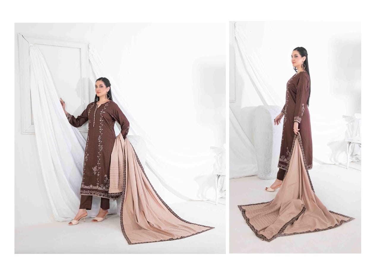 Paired with an Exclusive Embroidered Banarsi Shawl Dupatta that adds a touch of royal charm, and Unstitched Plain Shalwar Fabric for your perfect tailored fit.